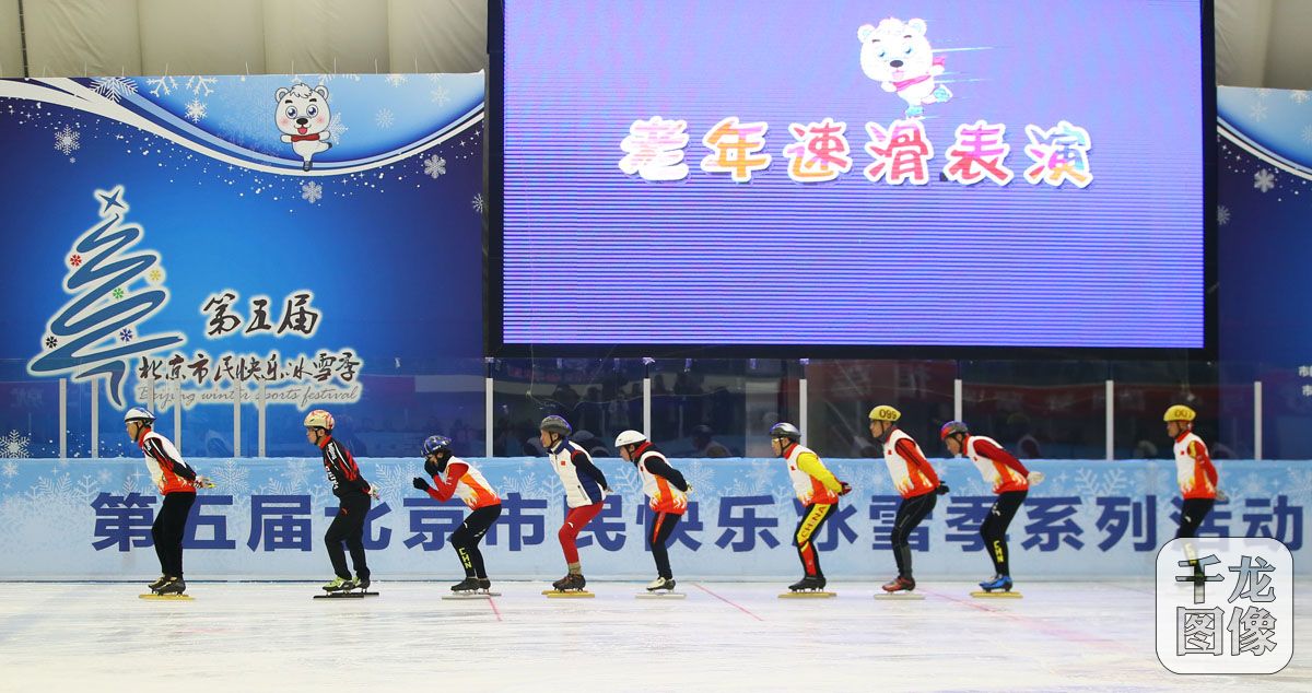 11月18日,第五届北京市民快乐冰雪季系列活动启动仪式在启迪冰雪体育中心举行。图为老年速滑表演。千龙网记者 戚连民摄