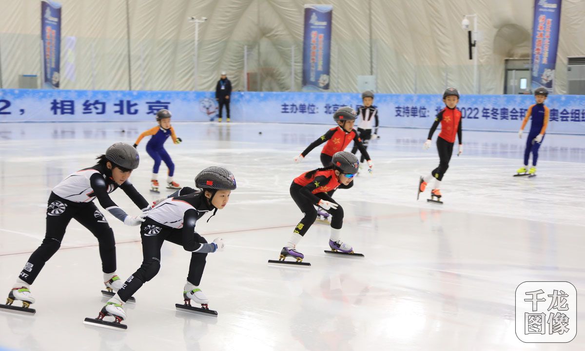 11月18日,第五届北京市民快乐冰雪季系列活动启动仪式在启迪冰雪体育中心举行。图为短道速滑接力比赛。千龙网记者 戚连民摄