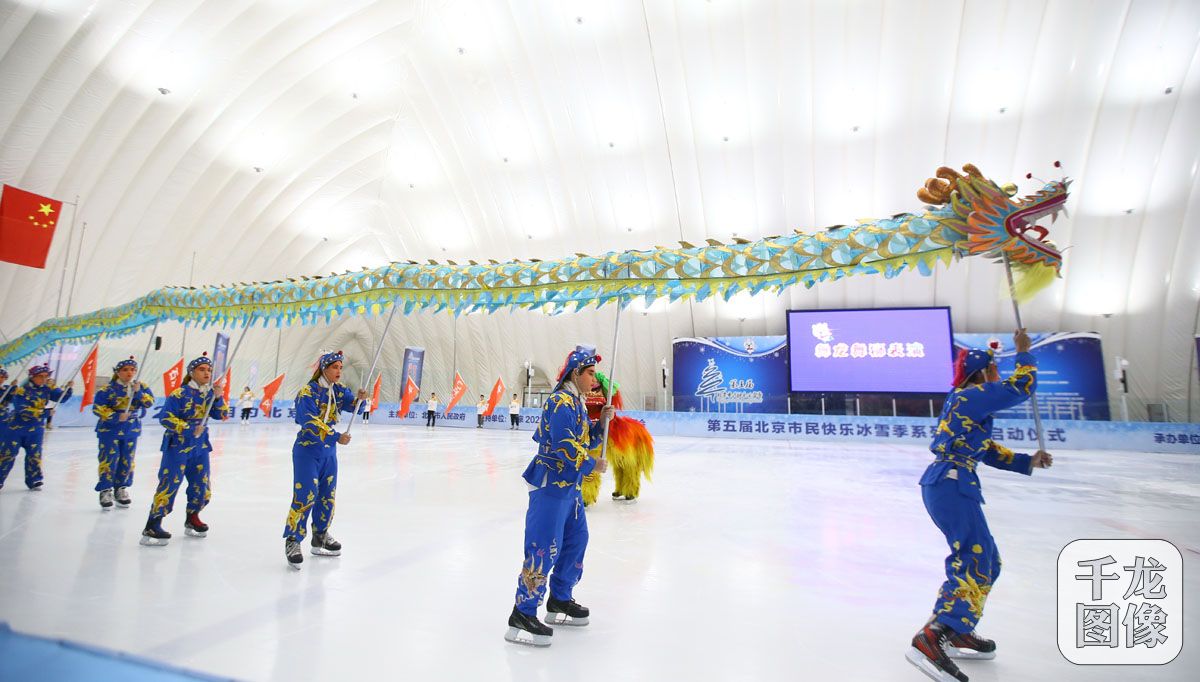 11月18日,第五届北京市民快乐冰雪季系列活动启动仪式在启迪冰雪体育中心举行。图为舞龙舞狮表演。千龙网记者 戚连民摄