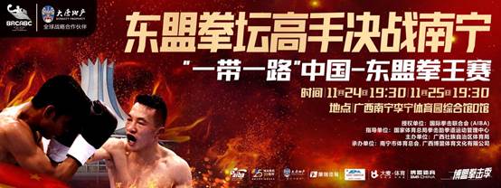 11月24日和11月25日19:30,“一带一路”中国-东盟拳王赛将在广西南宁李宁体育园综合馆D馆火爆开战,敬请关注!