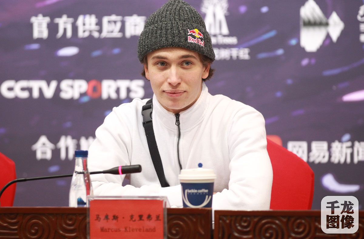 11月22日,2018沸雪北京国际雪联单板滑雪大跳台世界杯运动员与媒体见面会在鸟巢新闻发布厅举行。国际雪联竞赛部主任罗伯特·莫里斯、单板滑雪大跳台和坡面障碍技巧国家队领队周瑾、挪威选手马库斯·克里弗兰、奥地利选手安娜·加塞尔出席了本次见面会。图为挪威选手马库斯·克里弗兰。千龙网发 北京市体育局供图
