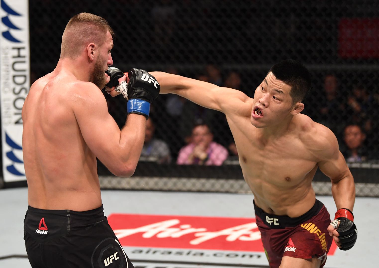 11月24日,UFC北京赛在北京凯迪拉克中心激战正酣,再晚间打响的两场有中国选手参加的主赛中,中国选手双双获胜,李景亮三回合成功KO德国选手大卫-扎瓦达,而年仅20岁的宋亚东经过三回合苦战,最终点数击败美国选手文斯-莫拉莱斯,取得比赛胜利。