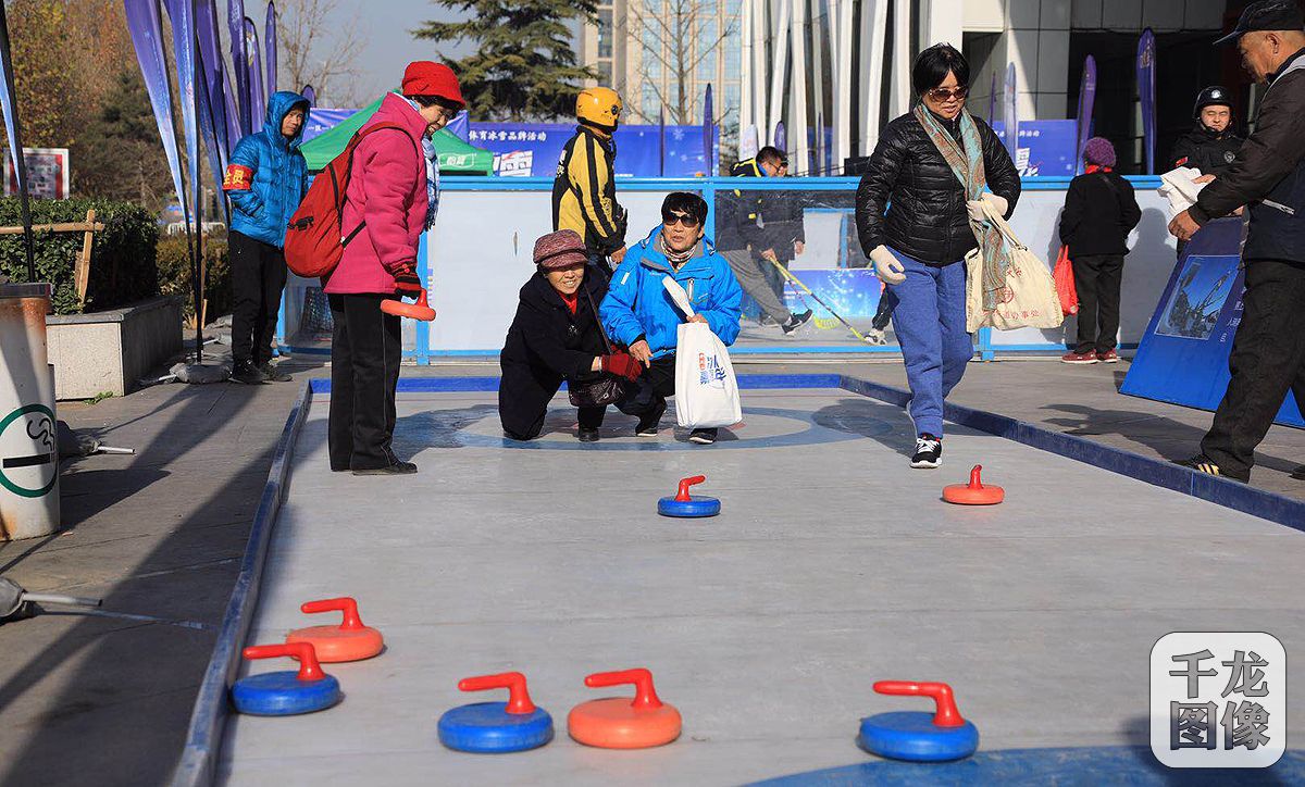 11月29日,2018年北京市“一区一品”群众体育冰雪活动之北京经济技术开发区冰雪嘉年华11月29日在北京华联力宝购物中心西广场举行,活动自11月29日起到12月2日结束。图为市民参与体验冰壶活动。千龙网发 大胡摄
