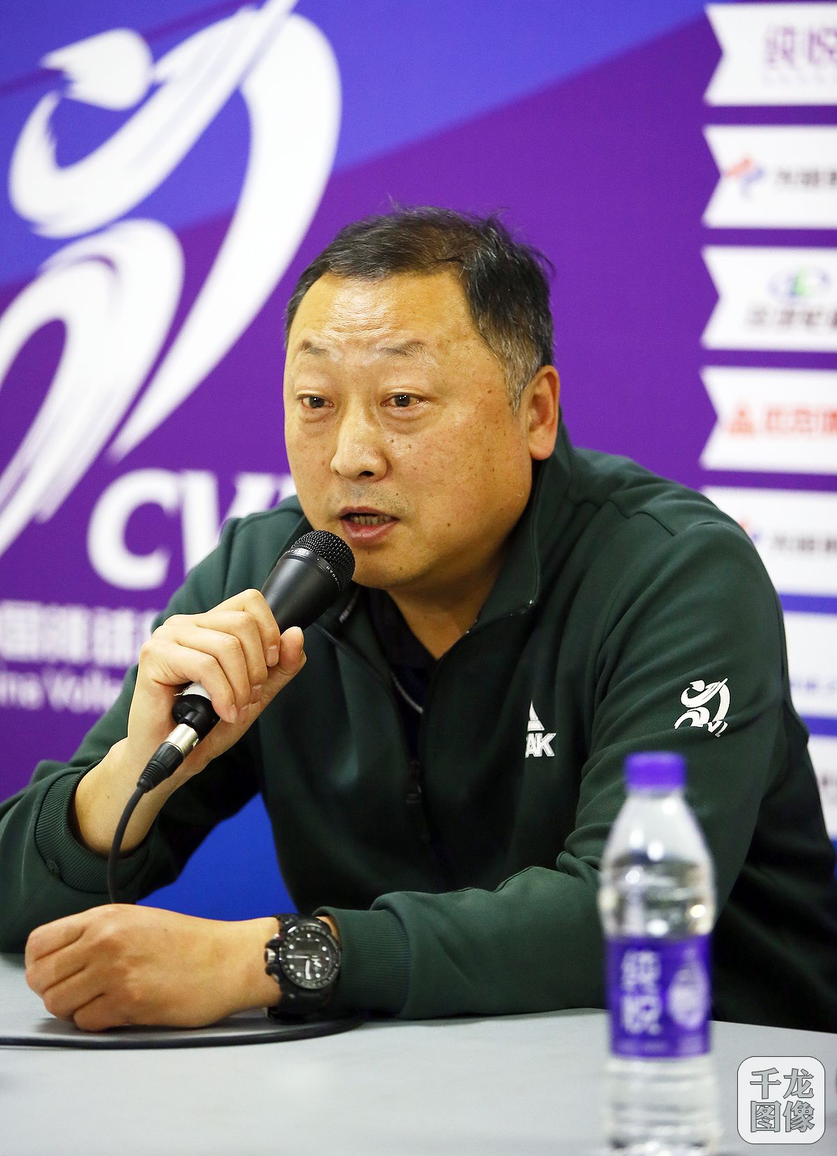 11月28日,2018-2019赛季中国男子排球超级联赛在第二阶段第五轮比赛,北京汽车男排主场迎战河南天冠男排,经过3局的较量,北汽男排3:0轻松获胜,延续了不败势头。图为主教练刘旭东点评本场比赛。千龙网记者 戚连民摄