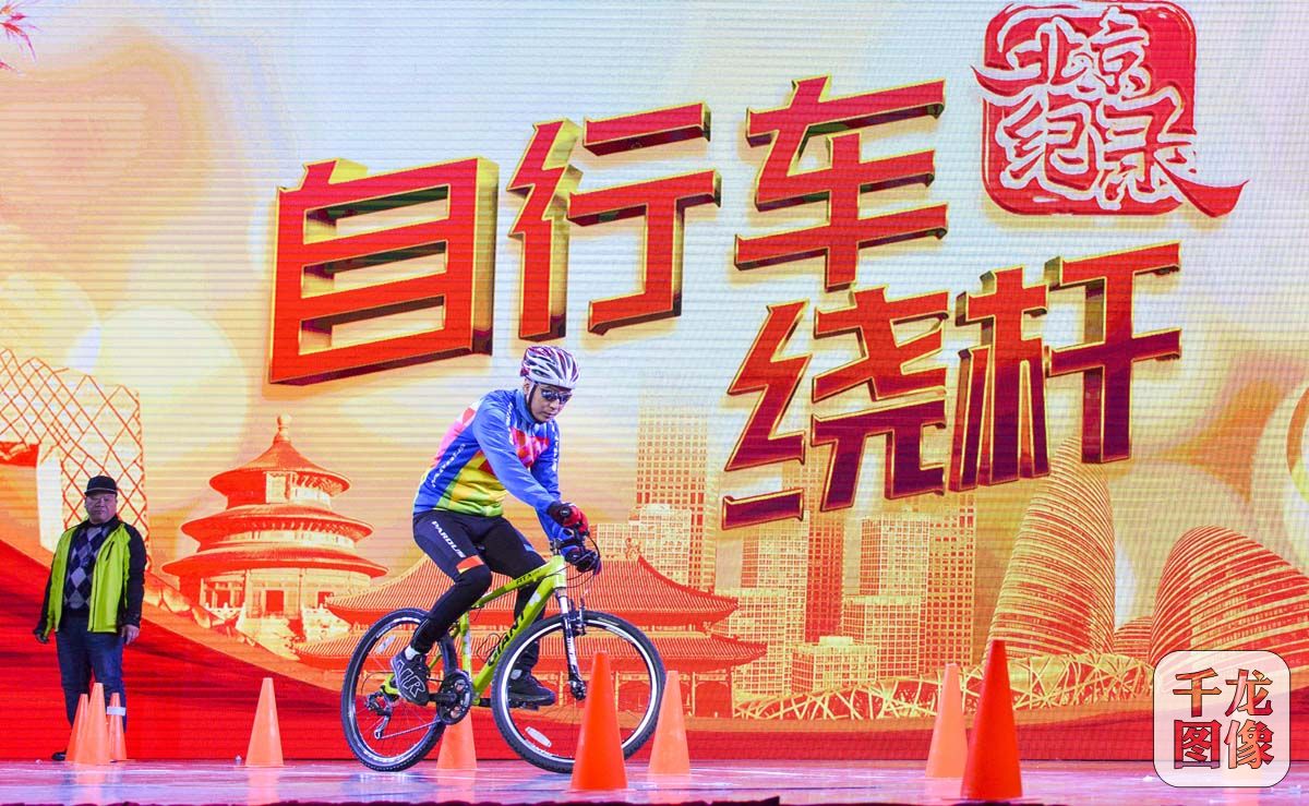 12月8日,2018年全民健身“北京纪录”挑战赛年度总决赛12月8日来到地坛体育馆,300余名健身达人通过比赛、表演等方式,展现着各自的风采,并创造出了2018年的年度“北京纪录”。图为自行车速度绕桩赛的。千龙网发 北京社会体育管理中心供图
