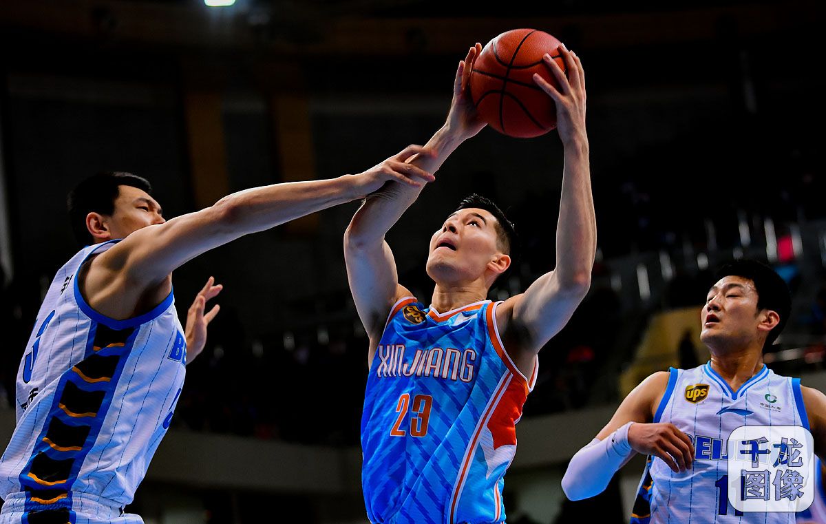 12月12日,CBA联赛北京首钢男篮坐镇首钢篮球中心迎战新疆广汇汽车队。经过加时苦战,首钢队以113比111险胜对手,拿到本赛季CBA常规赛第18轮的胜利。图为本场比赛精彩瞬间。千龙网发 胡科摄