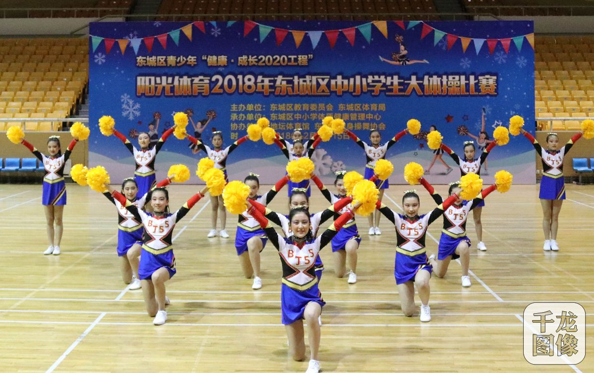 12月14日,由东城区健身操舞协会协办的阳光体育2018年东城区中小学生大体操比赛在地坛体育馆举行。比赛设啦啦操、排舞、团体操三个项目。来自东城区中、小、幼共32个参赛单位,69支队伍,近2000名学生在这里展示他们的自信、魅力与激情。图为比赛现场。千龙网发 东城区健身操舞协会供图