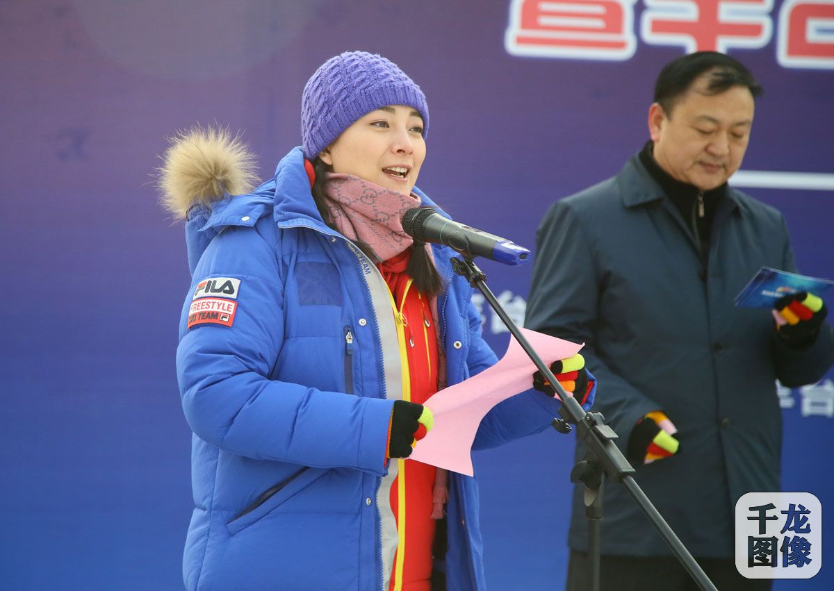 1月6日,丰台区第四届欢乐冰雪季暨丰台区冰雪大篷车活动在万龙八易滑雪场启动,来自丰台区的五百余名市民在当天的活动中参与冰雪运动,感受冰雪运动魅力。主题为“全民健身迎冬奥、快乐冰雪圆梦想”的本届冰雪季将一直持续到3月份,直接参与人数预计将达二十余万人。图为世界冠军李妮娜宣读倡议书。千龙网记者 戚连民摄