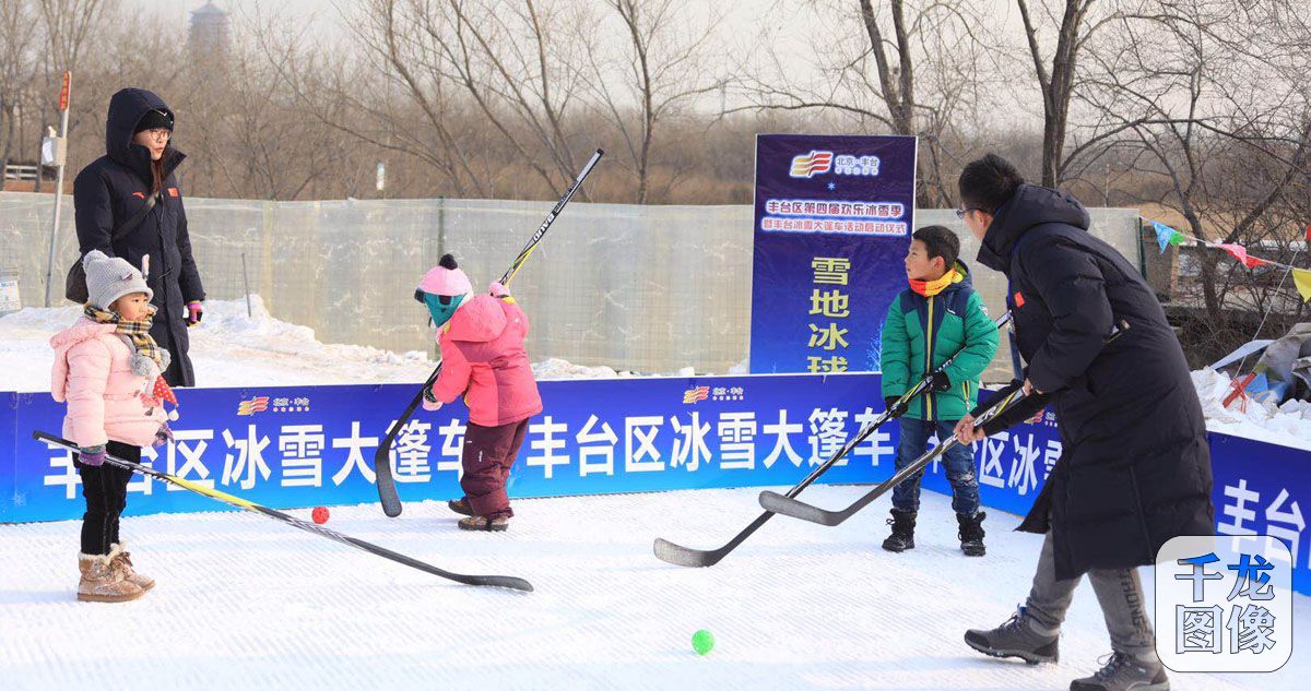1月6日,丰台区第四届欢乐冰雪季暨丰台区冰雪大篷车活动在万龙八易滑雪场启动,来自丰台区的五百余名市民在当天的活动中参与冰雪运动,感受冰雪运动魅力。主题为“全民健身迎冬奥、快乐冰雪圆梦想”的本届冰雪季将一直持续到3月份,直接参与人数预计将达二十余万人。图为雪地冰球。千龙网发 大胡摄
