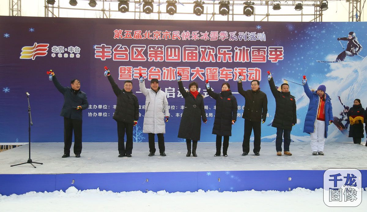 1月6日,丰台区第四届欢乐冰雪季暨丰台区冰雪大篷车活动在万龙八易滑雪场启动,来自丰台区的五百余名市民在当天的活动中参与冰雪运动,感受冰雪运动魅力。主题为“全民健身迎冬奥、快乐冰雪圆梦想”的本届冰雪季将一直持续到3月份,直接参与人数预计将达二十余万人。图为出席启动仪式的领导和嘉宾。千龙网记者 戚连民摄