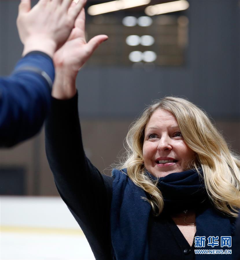 1月9日,花样滑冰编舞教练劳瑞·妮可在场边指导运动员。 当日,中国花样滑冰队在北京
