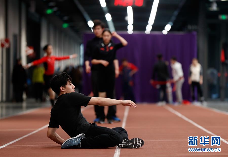 1月9日,花样滑冰运动员韩聪在上场前热身。 当日,中国花样滑冰队在北京
