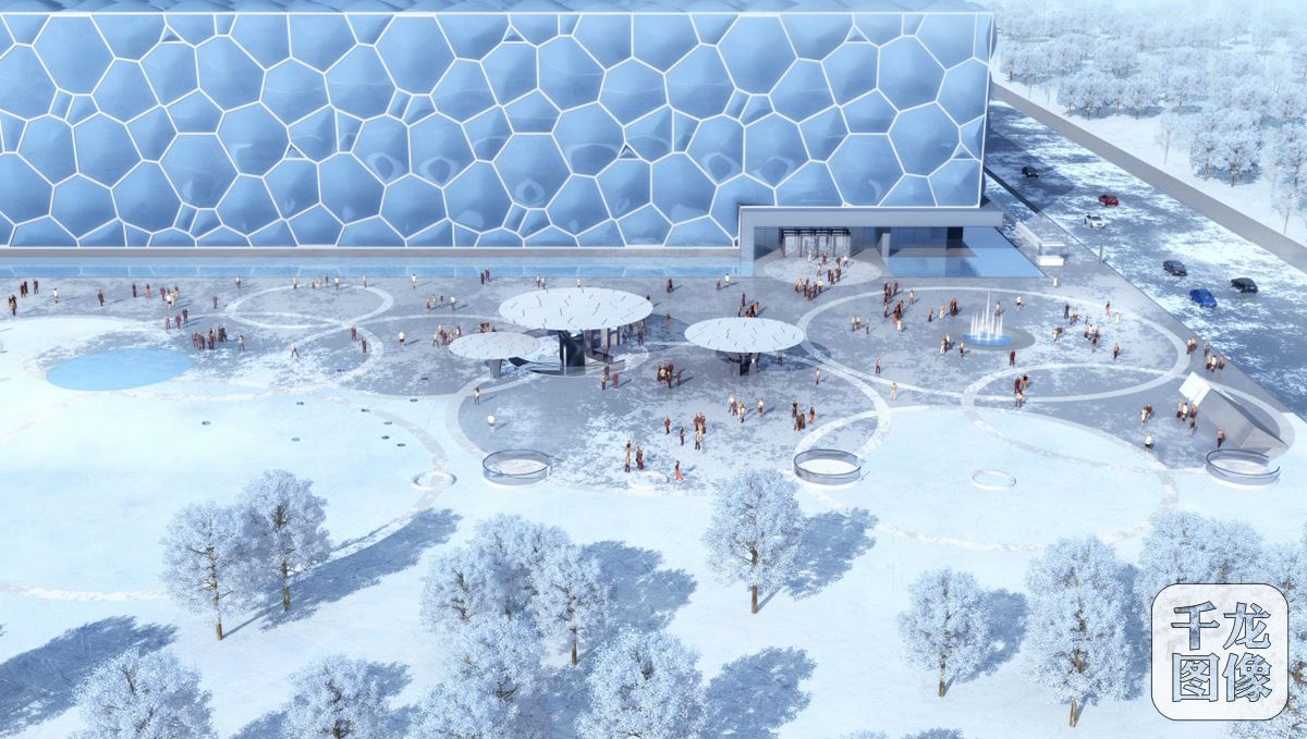 1月28日,国家游泳中心的南广场,在长螺旋钻机的轰鸣声中,“冰立方”冰上运动中心建设工程的第一根桩正式开钻。图为“冰立方”冰上运动中心效果图。千龙网发 国家游泳中心供图