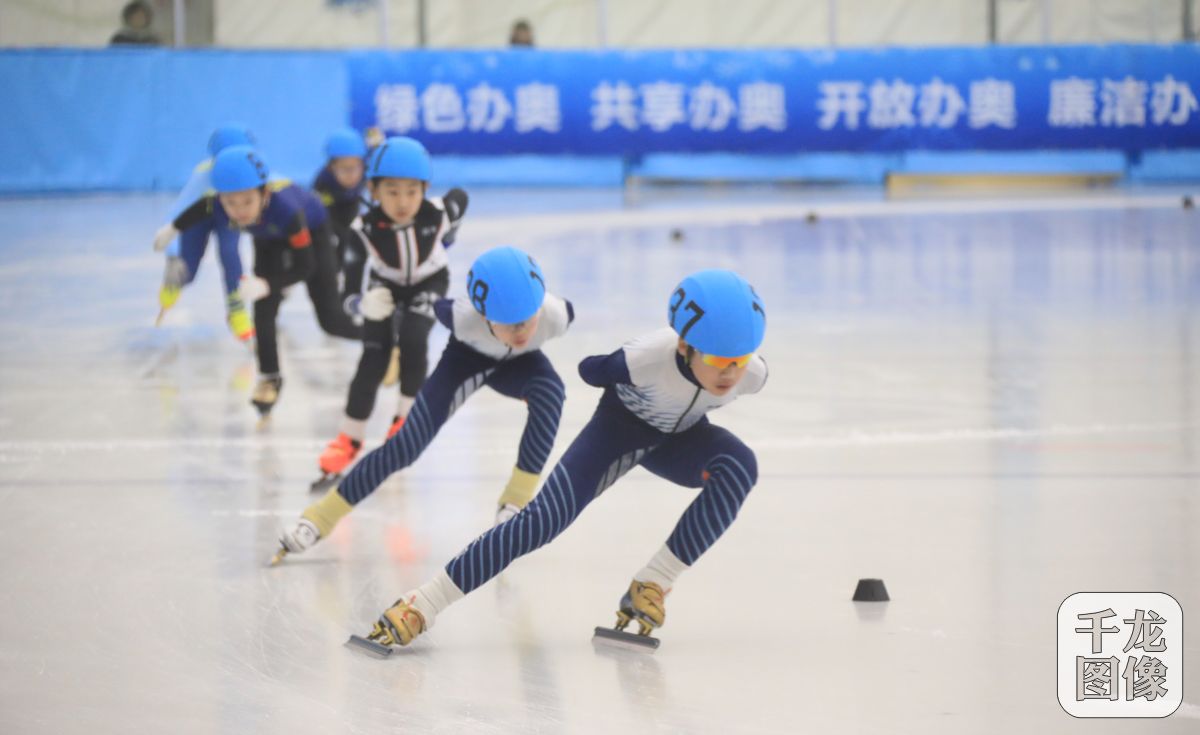 1月26-27日,第四届大众冰雪北京公开赛短道速滑比赛在北京启迪冰雪中心举行,来自本市各滑冰俱乐部的7支短道速滑队参加了开幕仪式及比赛。图为参赛选手在比赛中。千龙网记者 戚连民摄