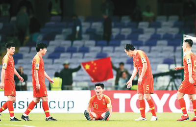 距离国足在淘汰赛中0∶3完败伊朗队已经过去几天了。但相信很多球迷依然还记得当时的场景:38岁的郑智在赛后掩面痛哭,直言“对我的年龄来说,冲击下一届世界杯没有太大的意义”;29岁的吴曦因伤离场,不甘的眼神让人动容;23岁的刘洋赛后一瘸一拐地下楼梯……面对此情此景,我们很难苛责球员不够拼、教练员不够努力。可以说,国足本届亚洲杯5场比赛,能取得三胜两负、挺进八强的成绩,球员的战斗意志是足够的,答卷是及格的。