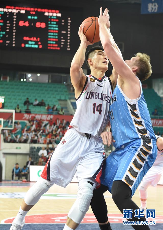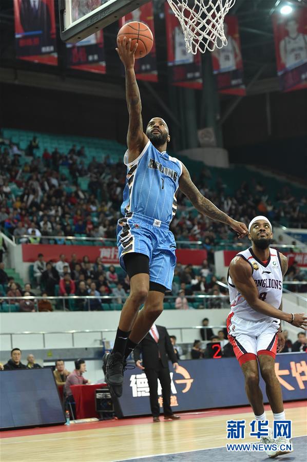 北京首钢队球员艾伦·杰克逊在比赛中上篮。新华社记者梁旭摄