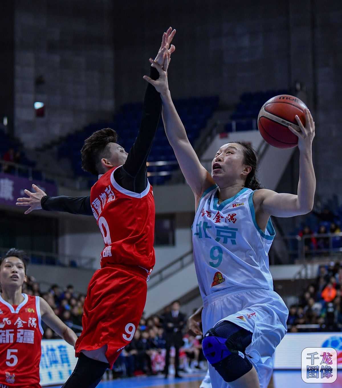 2月18日, WCBA四分之一决赛第三回合中,首钢队坐镇主场,以75比67战胜新疆体彩女篮,总比分以2比1领先,率先拿到了赛点。图为本场比赛精彩瞬间。千龙网发 胡科摄