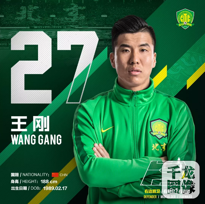 2019赛季,王刚将身披北京中赫国安27号球衣为俱乐部效力。
