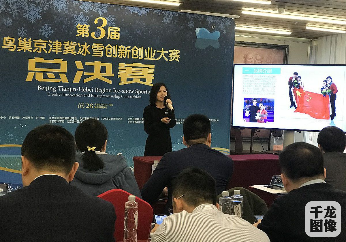 2月28日,第三届鸟巢京津冀冰雪创新创业大赛决赛在鸟巢文化中心举办,15家优质冰雪项目进行终极对决。图为参赛项目路演。千龙网发 主办方供图