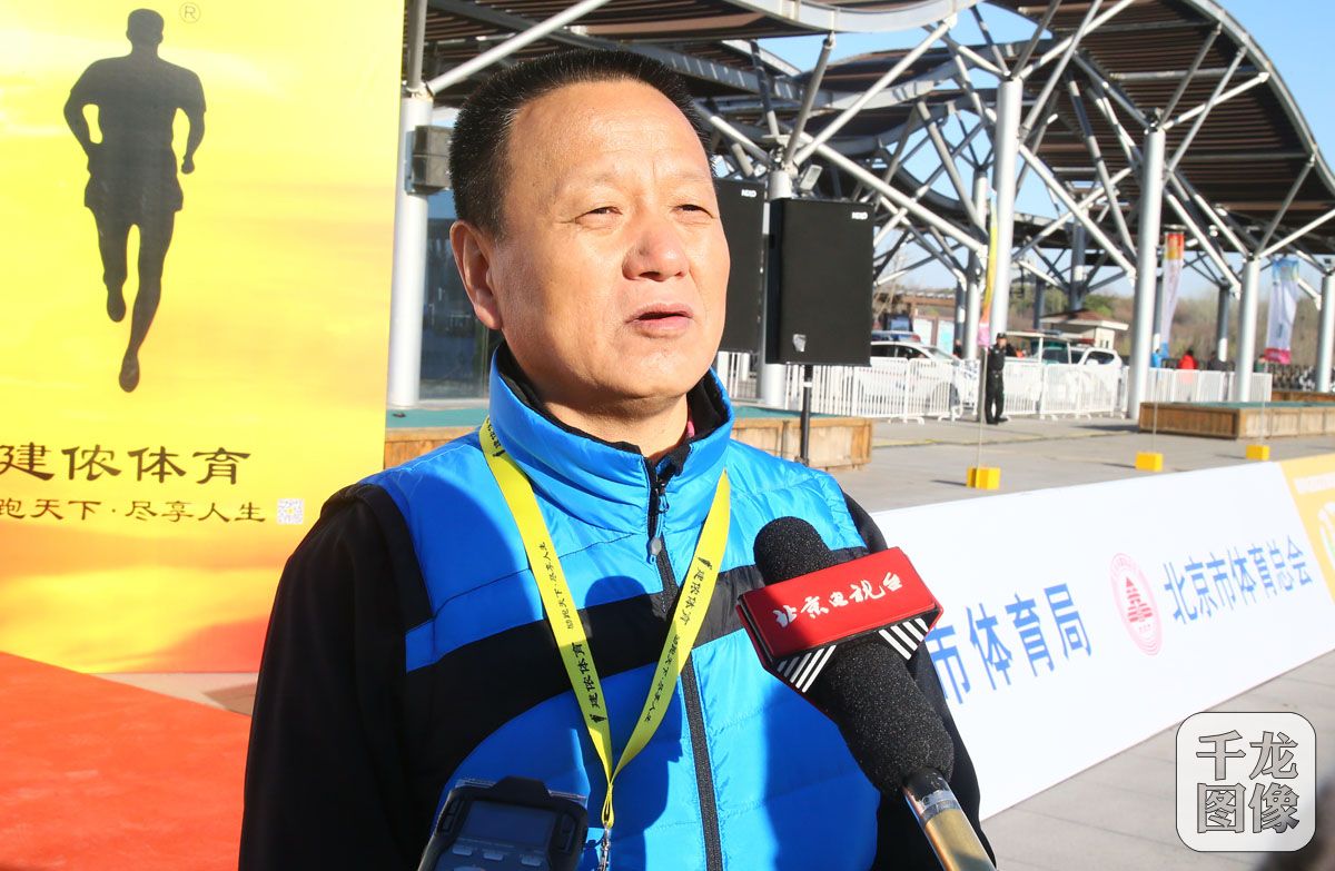 3月23日,以“跑向2022”为主题的第三十八届公园半程马拉松北京公开赛在奥林匹克森林公园鸣笛起跑,800名长跑爱好者参与了本届赛事。图为北京市体育总会秘书长王品熙介绍赛事组织情况。千龙网记者 戚连民摄