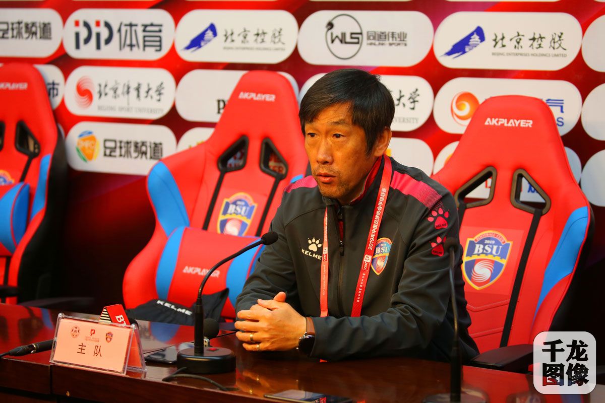 3月31日,2019中甲联赛第3轮继续进行,北京北体大队主场0-2不敌呼和浩特队。图为北京北体大队主教练高洪波在赛后新闻发布会上。千龙网发 王沈童摄