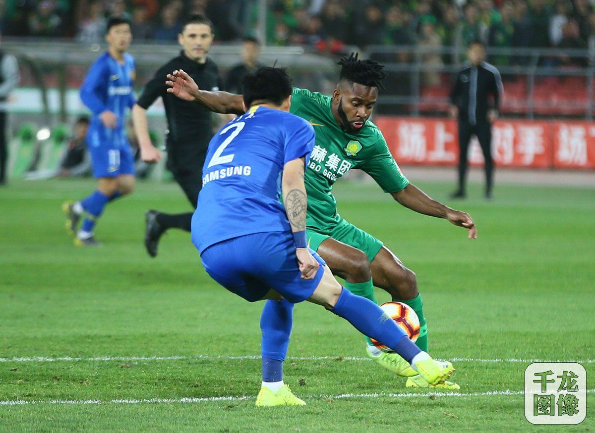 4月5日,北京国安坐镇主场迎战江苏苏宁,国安3-0击败苏宁,豪取4连胜,同时登上积分榜榜首。图为本场比赛精彩瞬间。千龙网记者 戚连民摄