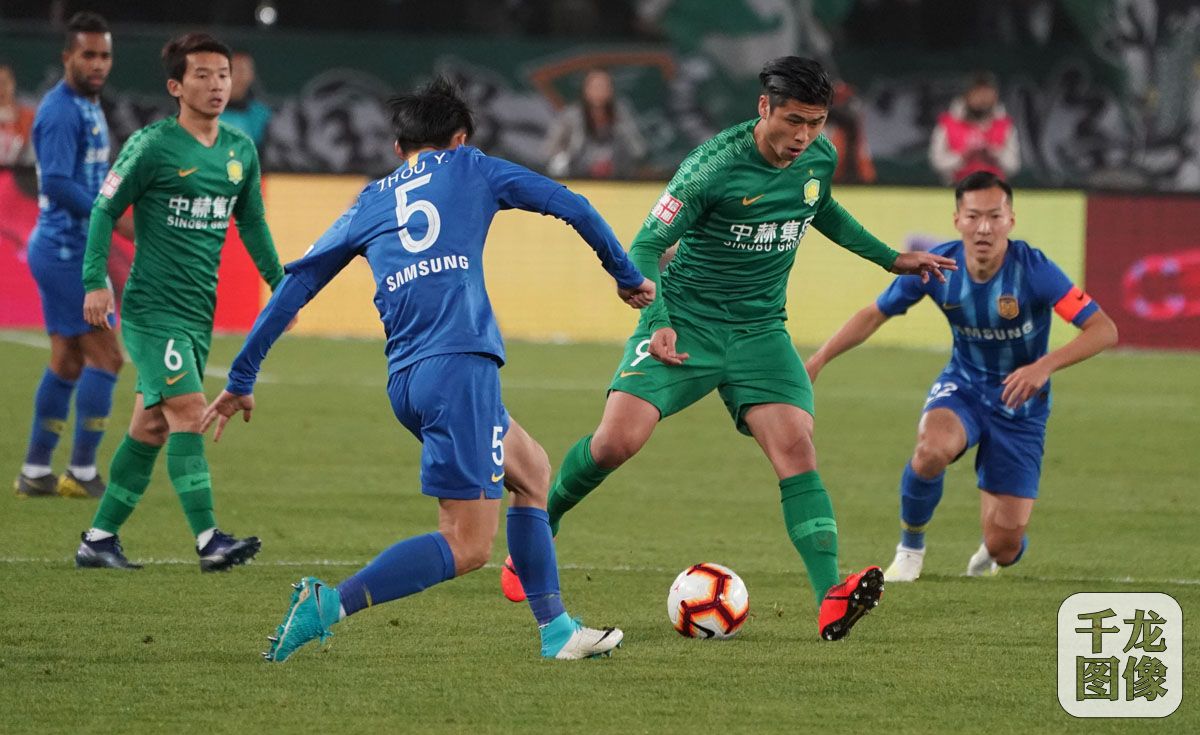 4月5日,北京国安坐镇主场迎战江苏苏宁,国安3-0击败苏宁,豪取4连胜,同时登上积分榜榜首。图为本场比赛精彩瞬间。千龙网记者 戚连民摄