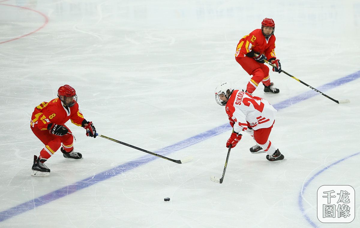 4月10日,2019年国际冰联女子冰球世界锦标赛甲级B组比赛在首钢冰球馆展开第四天的比赛,中国队在开局1分钟就进球的大好局面下,连丢四球,最终3-4不敌波兰队。目前中国队四战两胜两负,失去了冲击甲级A组的机会。图为本场比赛精彩瞬间(红色球衣为中国队)。千龙网记者 戚连民摄