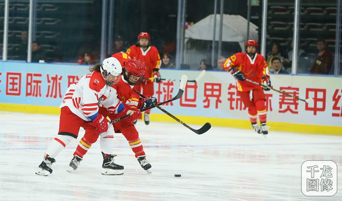 4月10日,2019年国际冰联女子冰球世界锦标赛甲级B组比赛在首钢冰球馆展开第四天的比赛,中国队在开局1分钟就进球的大好局面下,连丢四球,最终3-4不敌波兰队。目前中国队四战两胜两负,失去了冲击甲级A组的机会。图为本场比赛精彩瞬间(红色球衣为中国队)。千龙网记者 戚连民摄