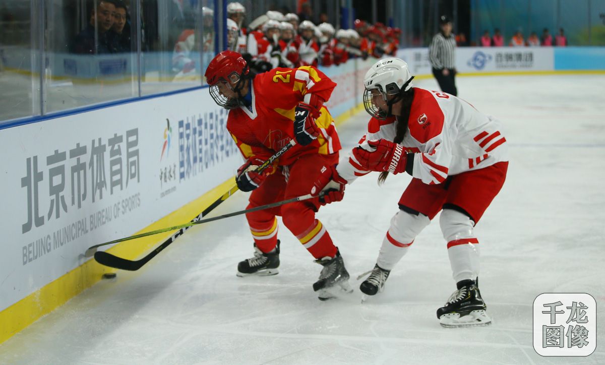 4月10日,2019年国际冰联女子冰球世界锦标赛甲级B组比赛在首钢冰球馆展开第四天的比赛,中国队在开局1分钟就进球的大好局面下,连丢四球,最终3-4不敌波兰队。目前中国队四战两胜两负,失去了冲击甲级A组的机会。图为本场比赛精彩瞬间(红色球衣为中国队)。千龙网记者 戚连民摄