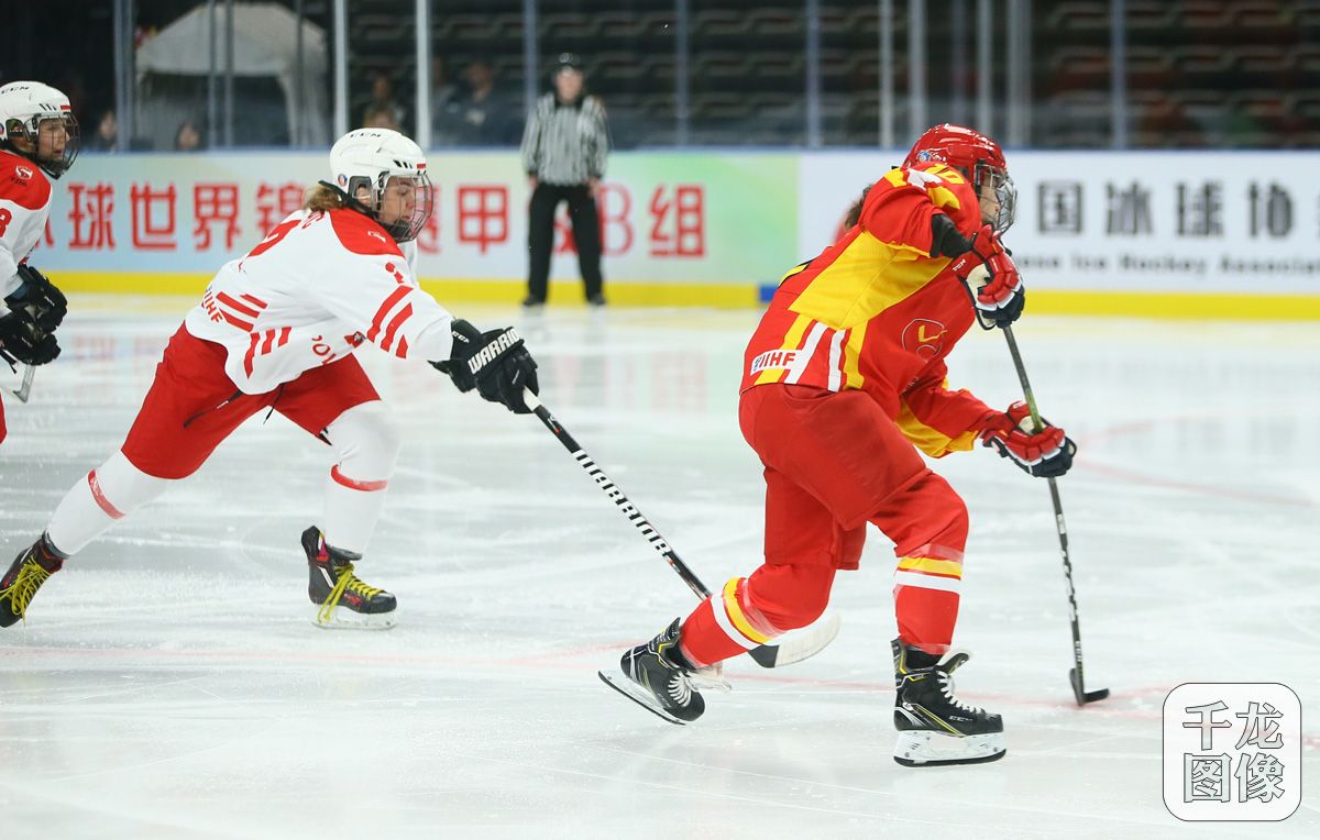 4月10日,2019年国际冰联女子冰球世界锦标赛甲级B组比赛在首钢冰球馆展开第四天的比赛,中国队在开局1分钟就进球的大好局面下,连丢四球,最终3-4不敌波兰队。目前中国队四战两胜两负,失去了冲击甲级A组的机会。图为本场比赛精彩瞬间(红色球衣为中国队)。千龙网记者 戚连民摄