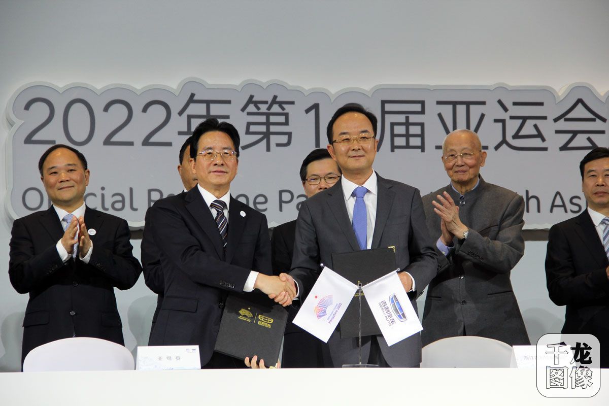 千龙网杭州4月13日讯(记者 黄业)2022年第19届亚运会汽车服务官方合作伙伴签约仪式4月13日在杭州国际博览中心举行。吉利汽车与第19届亚运会组委会正式签约,成为第19届亚运会官方汽车服务合作伙伴。