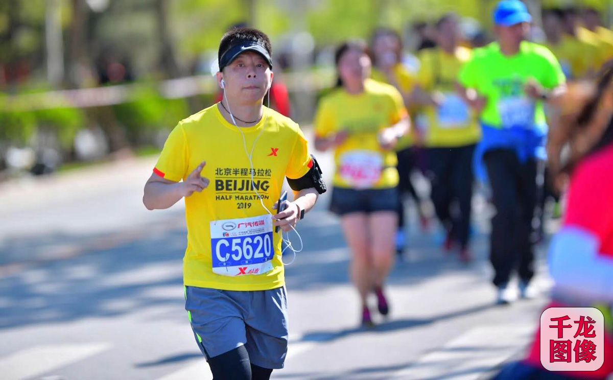 4月14日,广汽传祺·2019北京国际长跑节-北京半程马拉松在天安门广场鸣枪起跑,20000名选手用奔跑的方式去享受运动带来的快乐,去感受北京这座古老城市的魅力。图为跑友王大治。千龙网发 跑友本人供图