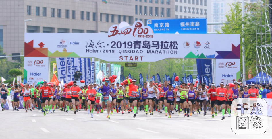 5月4日,2019青岛马拉松赛在五四广场鸣枪开跑,共有来自30个国家和地区的2万5千名选手参加了本次比赛。图为比赛精彩瞬间。千龙网发 组委会供图