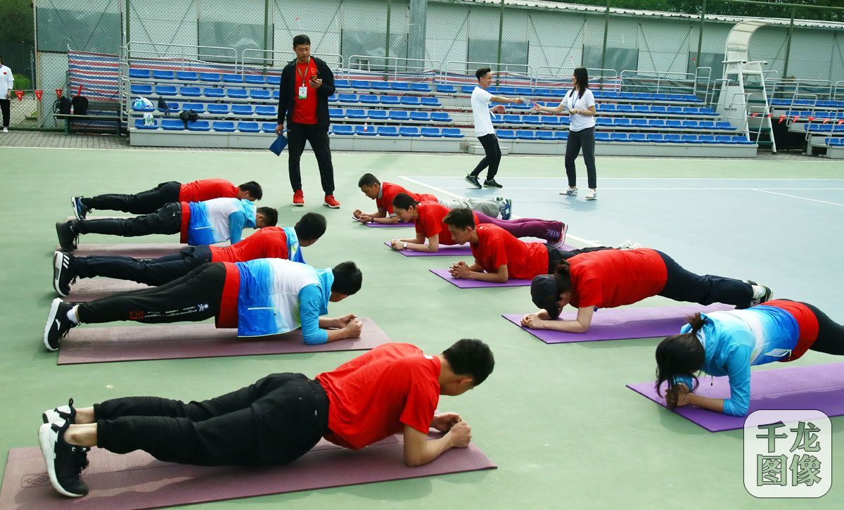 5月8日,一年一度的“国家奥林匹克体育中心来京建设者趣味健身活动”在国家奥林匹克体育中心举行。图为个人项目平板支撑比赛。千龙网记者 戚连民摄