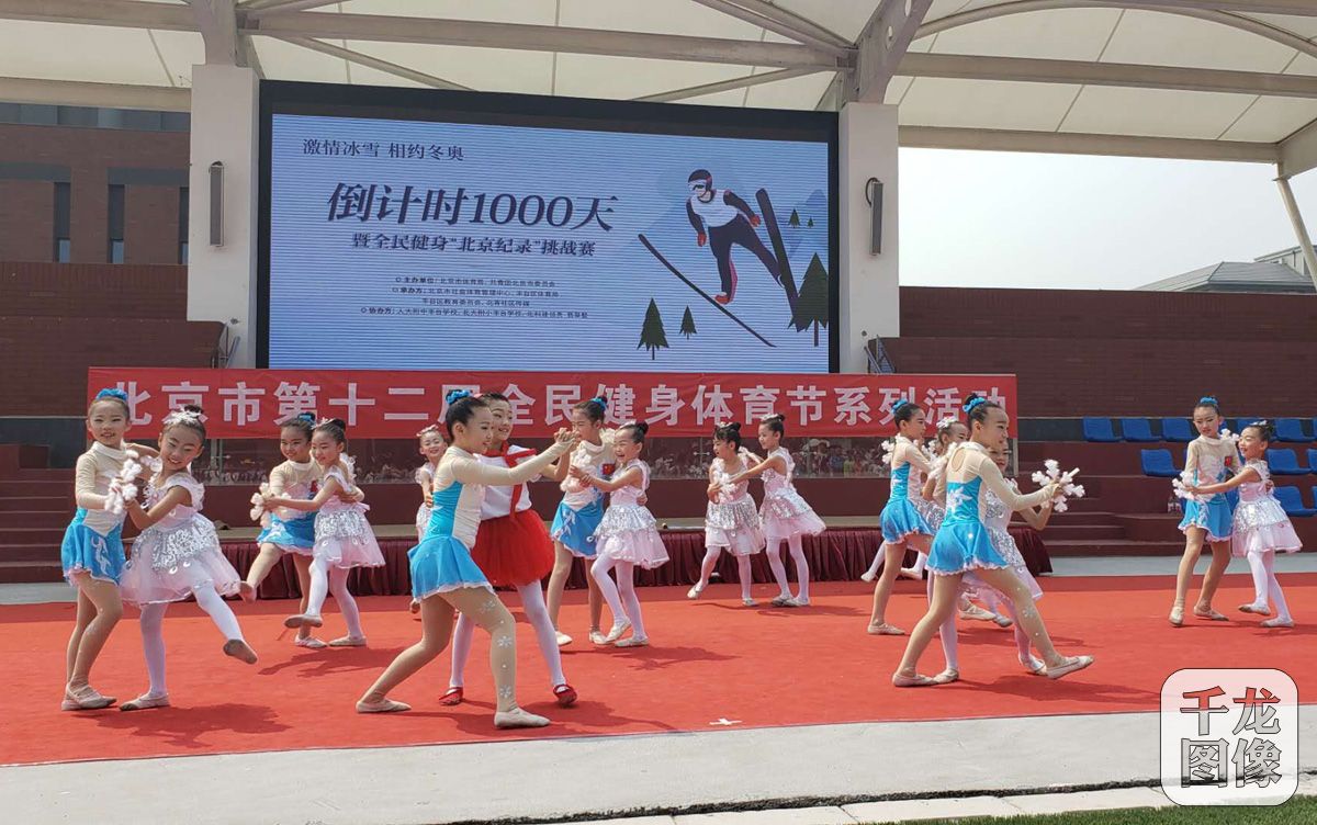 5月11日,2019年全民健身“北京纪录”挑战赛首站在丰台举行,来自人大附中、北大附小的300名学生及家长在一场运动嘉年华中,共同庆祝北京冬奥会倒计时1000天。图为活动现场。千龙网发 主办方供图