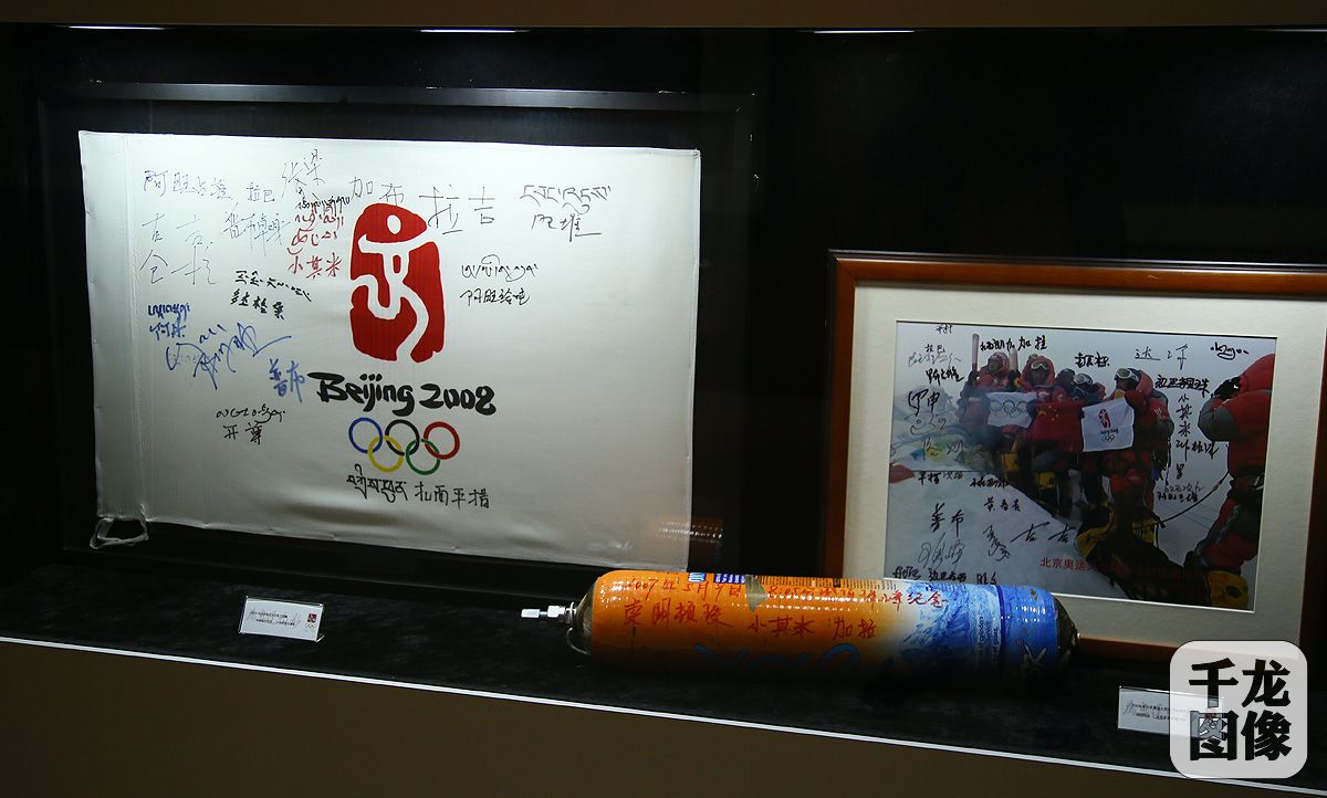 5月16日,“为奥运喝彩”奥林匹克艺术博览会城市系列展石家庄特展在石家庄美术馆举行。此次展览为2022北京冬奥会倒计时1000天系列纪念活动之一。图为展出的珠峰火炬手签名展品。千龙网记者 戚连民摄