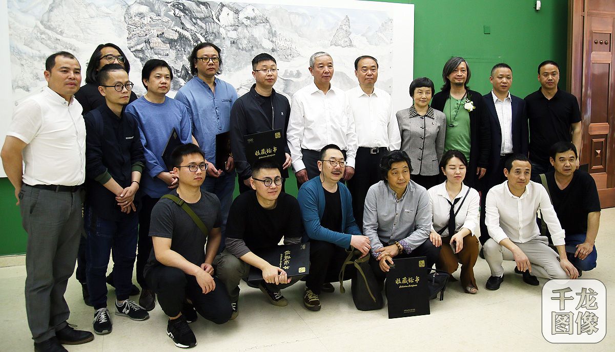 5月16日,“为奥运喝彩”奥林匹克艺术博览会城市系列展石家庄特展在石家庄美术馆举行。此次展览为2022北京冬奥会倒计时1000天系列纪念活动之一。图为国际奥委会副主席于再清和艺术家合影。千龙网记者 戚连民摄