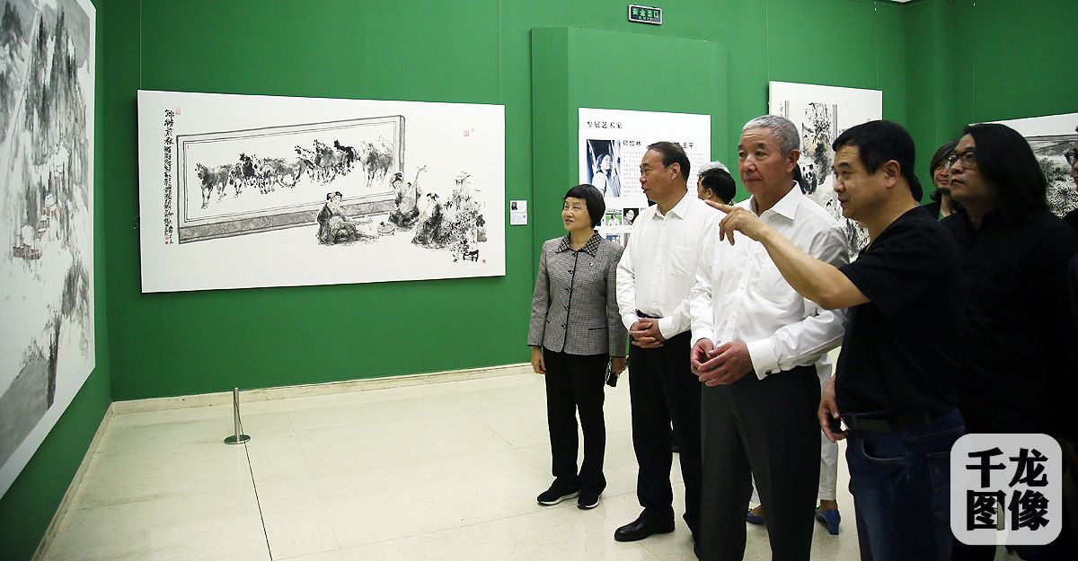 5月16日,“为奥运喝彩”奥林匹克艺术博览会城市系列展石家庄特展在石家庄美术馆举行。此次展览为2022北京冬奥会倒计时1000天系列纪念活动之一。图为国际奥委会副主席于再清等领导及嘉宾参观展览。千龙网记者 戚连民摄