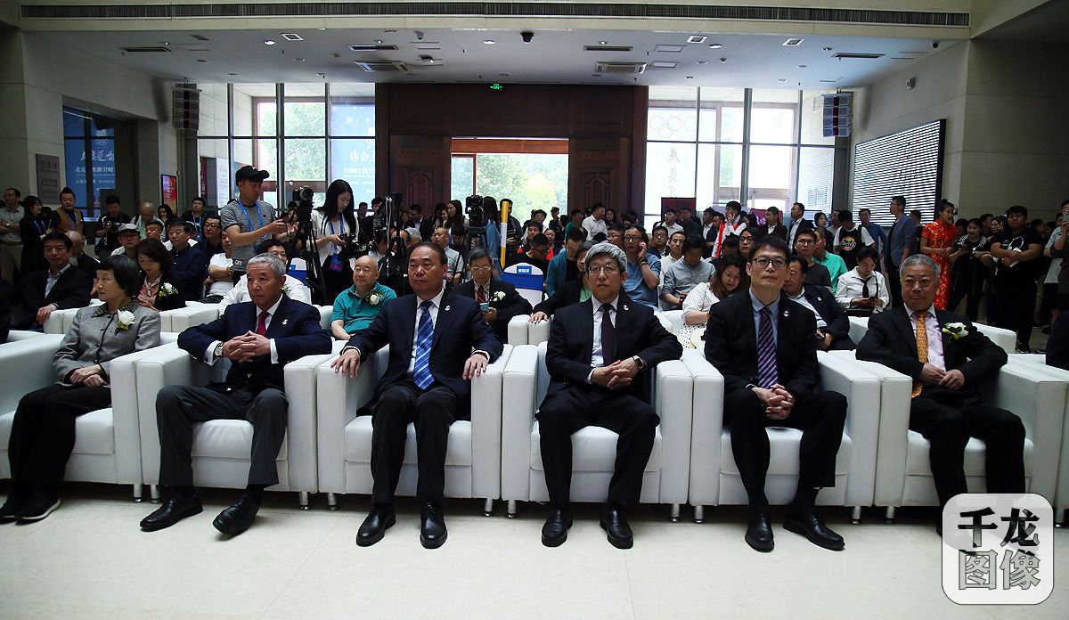 5月16日,“为奥运喝彩”奥林匹克艺术博览会城市系列展石家庄特展在石家庄美术馆举行。此次展览为2022北京冬奥会倒计时1000天系列纪念活动之一。图为国际奥委会副主席于再清(左二)等领导及嘉宾参加开幕式。千龙网记者 戚连民摄