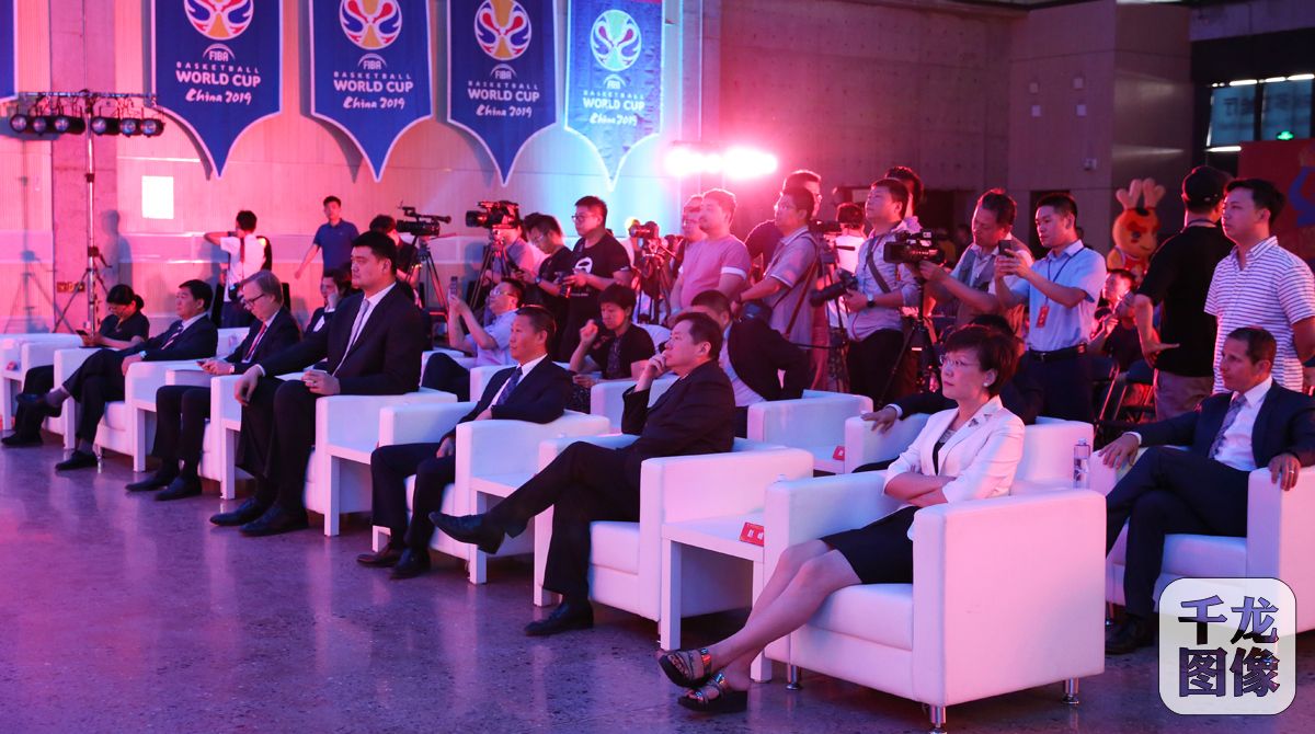 5月23日,2019年国际篮联篮球世界杯倒计时100天启动仪式在北京五棵松HI-Park多功能厅隆重举行。图为与会嘉宾。千龙网记者 戚连民摄