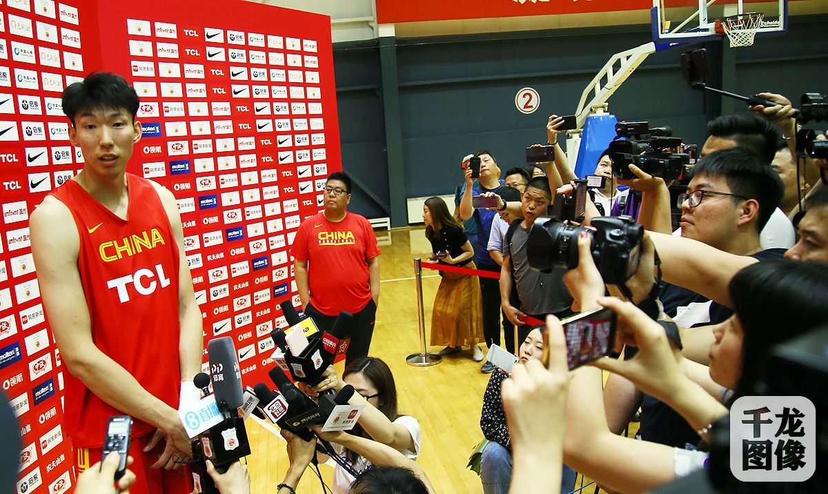 5月23日,中国男篮在京举行了首堂媒体公开课。图为周琦接受记者采访,介绍自己的短期目标及对家门口世界杯的展望。千龙网记者 戚连民摄