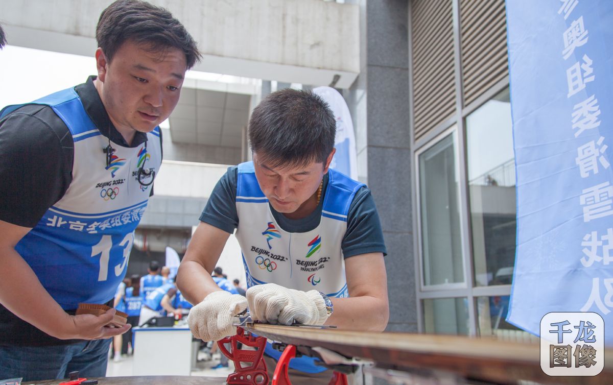 5月25日,北京冬奥组委滑雪战队再次集结,开启了专业技能提升之旅,深入学习雪板维护技能,在炎炎夏日苦练赛事保障技能。图为滑雪战队队员进行修底刃练习。千龙网发 北京冬奥组委供图