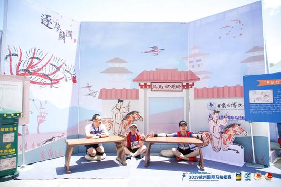兰州,作为丝绸之路的节点城市,邮驿系统已传承千年。为了使世界各地的跑者更加直观的了解古代邮驿制度和丝绸之路上驿站的重要地位,甘肃省博物馆将设计的“甘博驿“也搬到了赛事现场。在兰马博览会现场设立“兰马驿站“,布置有古丝绸之路驿使路线图。醒目的邮筒静静的“站”在现场,各位跑者可以通过“兰马驿站”为自己的亲友寄送特殊设计的明信片和信件。