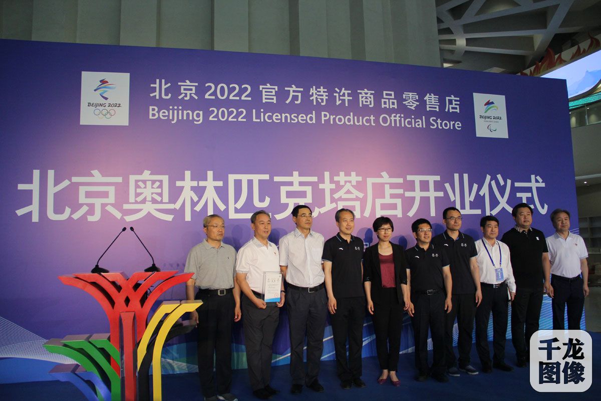 6月12日,北京2022官方特许商品零售店(北京奥林匹克塔店)开业。图为与会领导合影。千龙网记者 黄业摄