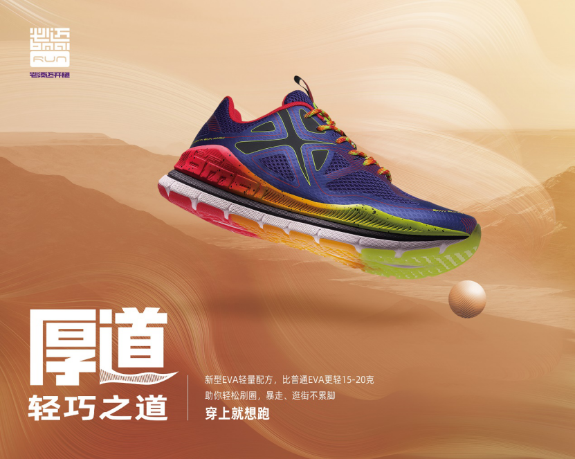 新型EVA轻量配方,比普通EVA降重15—20g,轻巧舒适,不论是减肥刷圈,还是暴走逛街,都能告别负担,“轻”松驾驭。