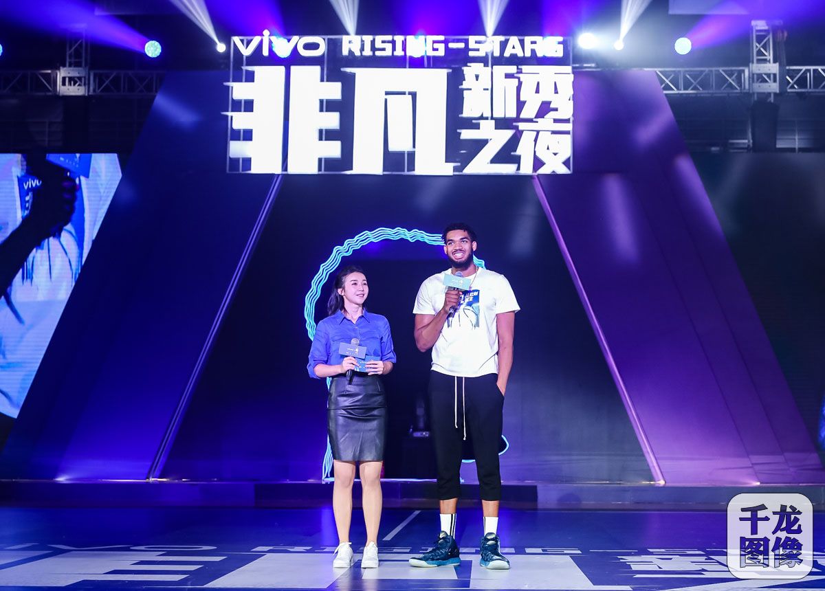 6月15,NBA球星卡尔-安东尼·唐斯亲临北京科技大学篮球馆,亮相vivo非凡新秀赛 · 新秀之夜活动现场。图为活动现场。千龙网发 主办方供图