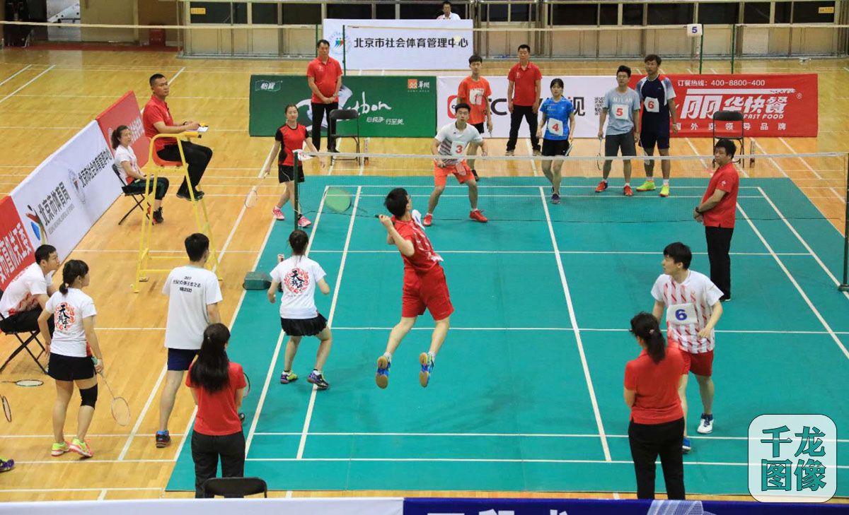 6月15日-16日,北京市第十二届全民健身体育节系列活动—第十五届北京市民羽毛球挑战赛总决赛在地坛体育馆举行。共有67支代表队、近1000名运动员在赛场上强强对决尽展风采。图为比赛精彩瞬间。千龙网发 大胡摄