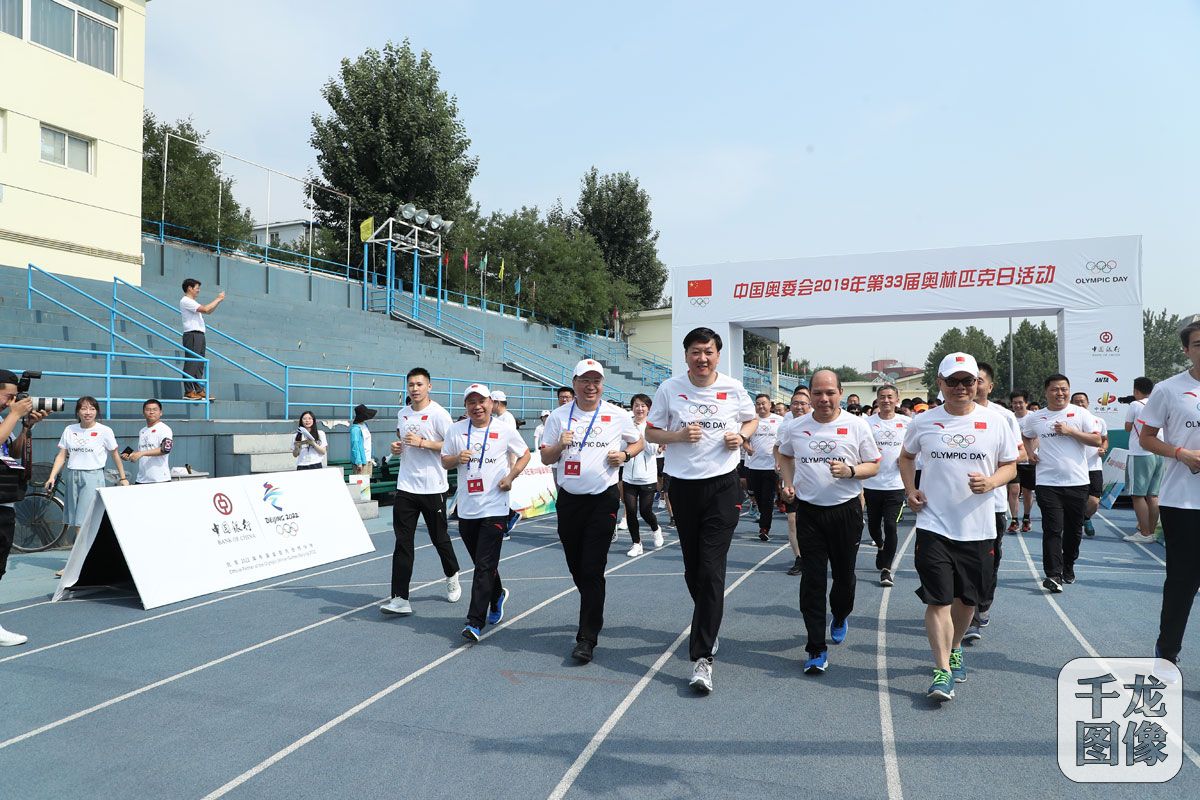 6月23日上午9时,中国奥委会2019年第33届奥林匹克日活动在北京、张家口、上海、广州、青岛、承德、海阳、十堰、鞍山、宁蒗等10地同步启动。图为国家体育总局训练局田径场的主会场活动。千龙网发 中国奥委会供图