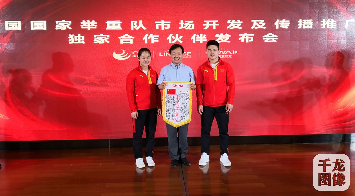 7月22日,中国国家举重队市场开发及传播推广独家合作伙伴发布会在京举行。中青旅联科正式成为国家举重队独家市场开发及传播推广的合作伙伴,将全面负责国家举重队团队及运动员的形象打造、品牌代言、商业开发、宣传推广等工作。图为签约仪式现场。千龙网记者 戚连民摄